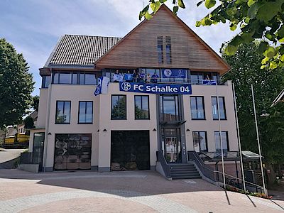 Schalke-Fanclub Elztal-Knappen besetzte den Rathausbalkon